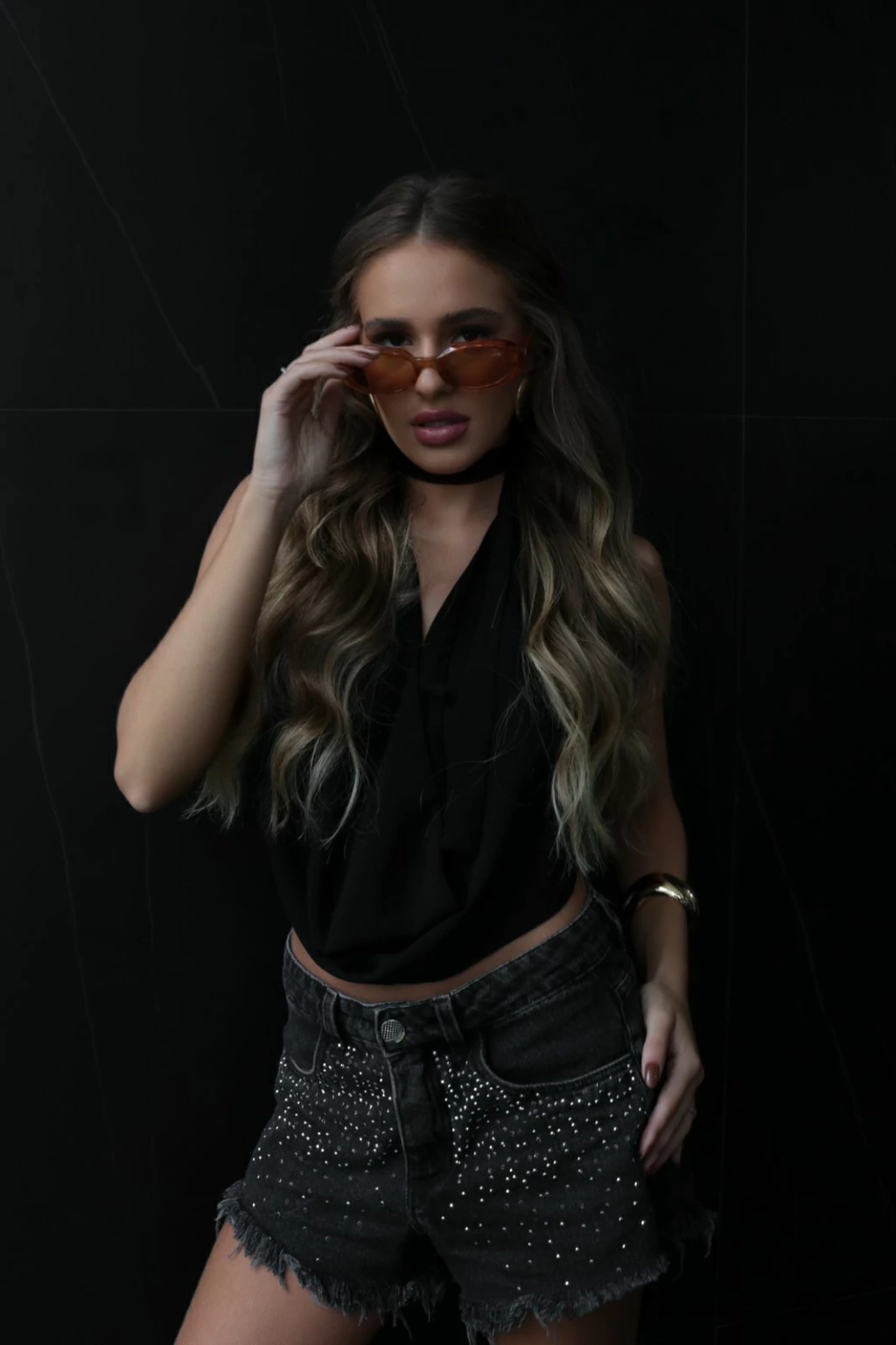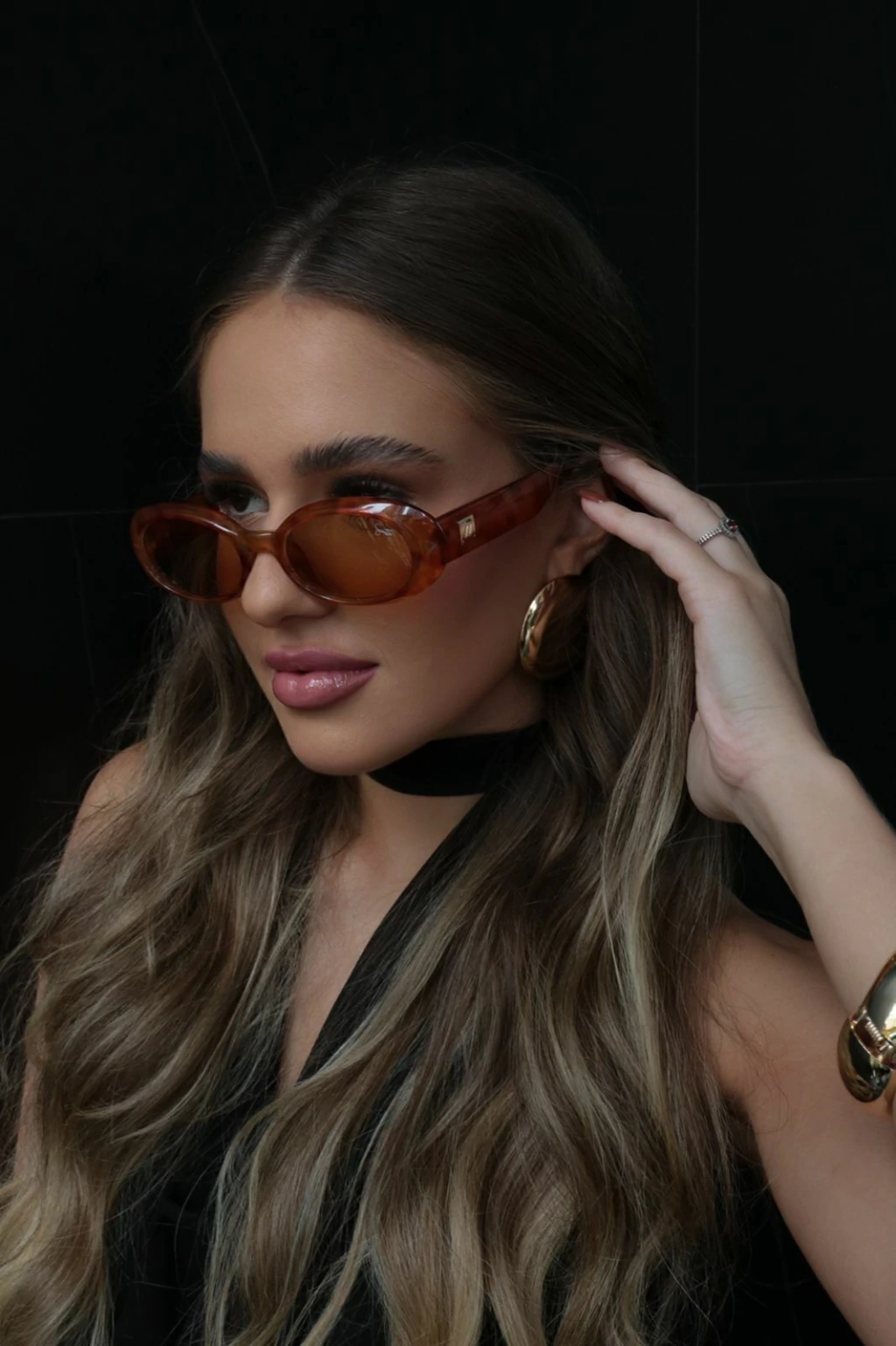 Modelo atual das lentes arredondadas. Sua armação em acetato marrom claro e detalhes em estampa de onça contam com um detalhes em metálico discreto e elegante.